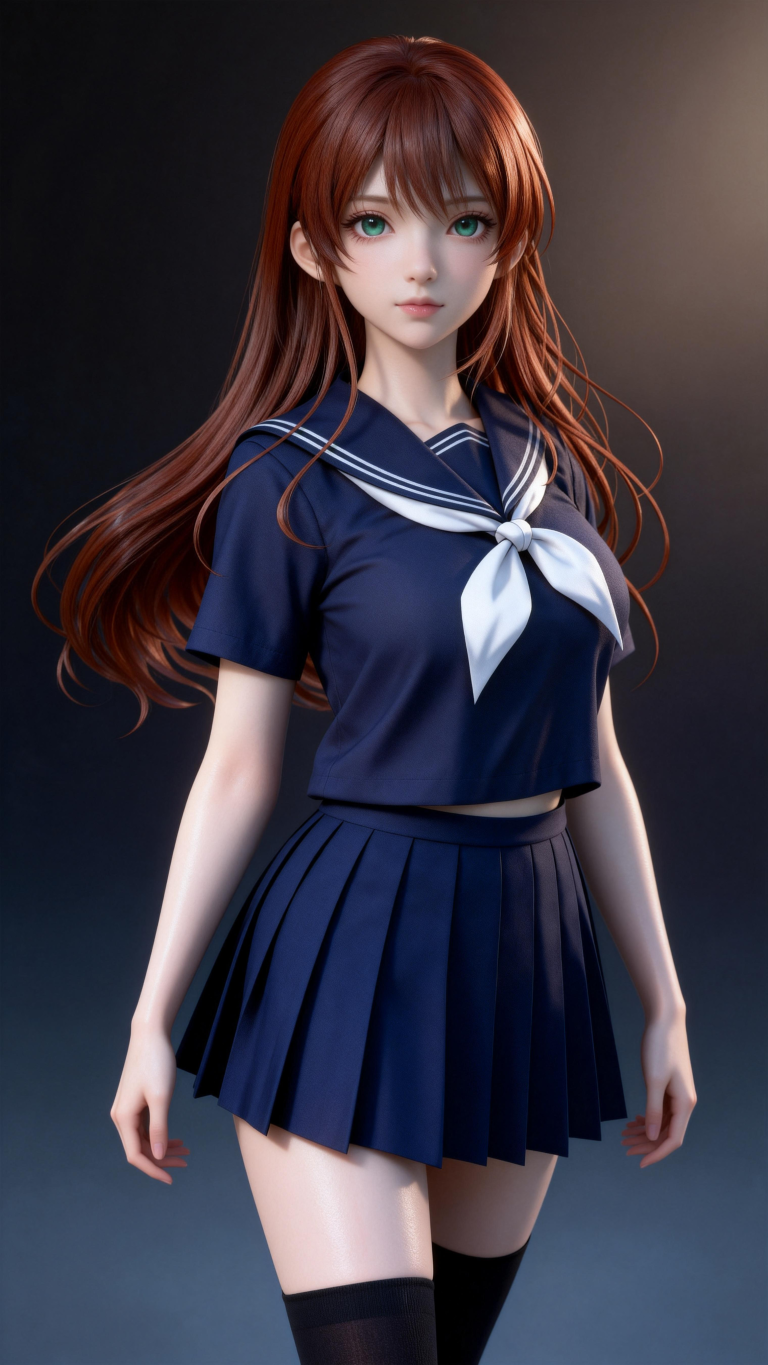 一位年轻亚洲女性,全身像,动漫转贞本义行风格,拥有精致立体的五官,真人比例身材,人物形象参考图2,皮肤白皙细腻,质感通透,朦胧的光照,整体妆容精致自然,背景为深色渐变,突出人物主体,光线柔和朦胧,呈现出专业摄影的质感,画面清晰,细节丰富,具有3D渲染的精致效果。