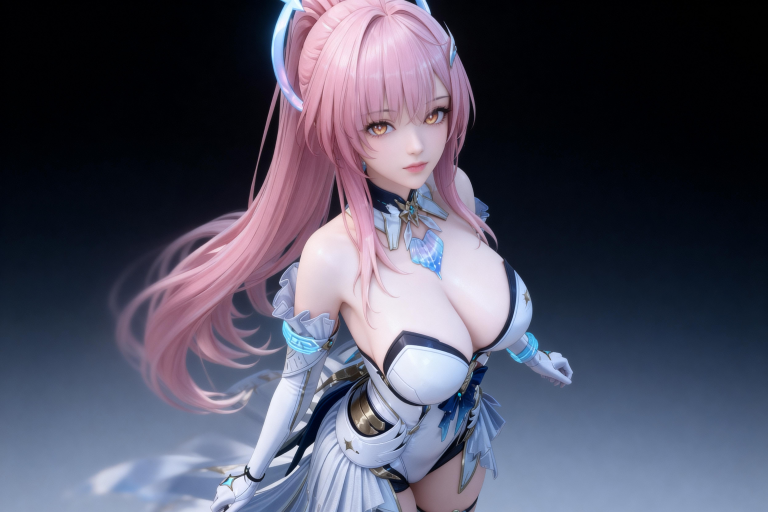 一位年轻亚洲女性,全身像,动漫转贞本义行风格,拥有精致立体的五官,真人比例身材,人物形象参考图2,皮肤白皙细腻,质感通透,朦胧的光照,整体妆容精致自然,背景为深色渐变,突出人物主体,光线柔和朦胧,呈现出专业摄影的质感,画面清晰,细节丰富,具有3D渲染的精致效果。