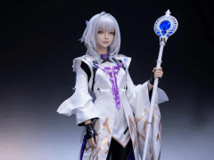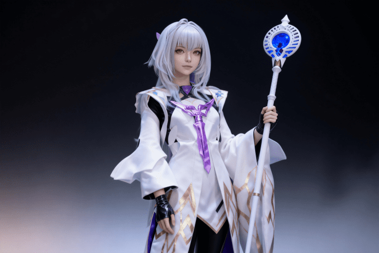 一位年轻亚洲女性,全身像,动漫转贞本义行风格,拥有精致立体的五官,真人比例身材,人物形象参考图2,皮肤白皙细腻,质感通透,朦胧的光照,整体妆容精致自然,背景为深色渐变,突出人物主体,光线柔和朦胧,呈现出专业摄影的质感,画面清晰,细节丰富,具有3D渲染的精致效果。