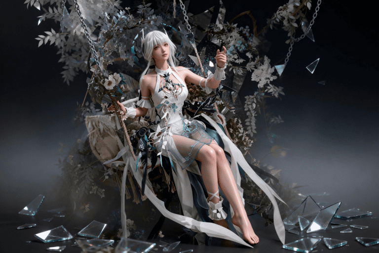 一位年轻亚洲女性,全身像,动漫转贞本义行风格,拥有精致立体的五官,真人比例身材,人物形象参考图2,皮肤白皙细腻,质感通透,朦胧的光照,整体妆容精致自然,背景为深色渐变,突出人物主体,光线柔和朦胧,呈现出专业摄影的质感,画面清晰,细节丰富,具有3D渲染的精致效果。