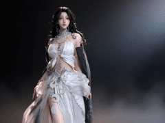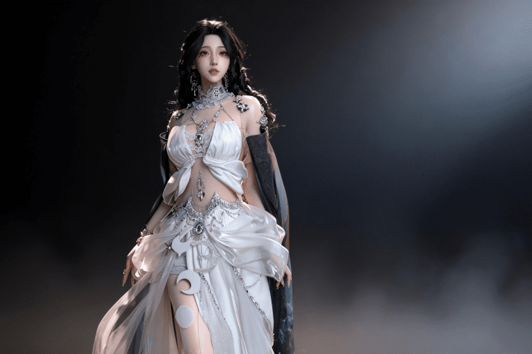 一位年轻亚洲女性,全身像,动漫转贞本义行风格,拥有精致立体的五官,真人比例身材,人物形象参考图2,皮肤白皙细腻,质感通透,朦胧的光照,整体妆容精致自然,背景为深色渐变,突出人物主体,光线柔和朦胧,呈现出专业摄影的质感,画面清晰,细节丰富,具有3D渲染的精致效果。