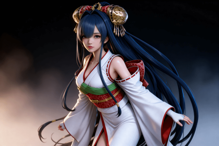一位年轻亚洲女性,全身像,动漫转贞本义行风格,拥有精致立体的五官,真人比例身材,人物形象参考图2,皮肤白皙细腻,质感通透,朦胧的光照,整体妆容精致自然,背景为深色渐变,突出人物主体,光线柔和朦胧,呈现出专业摄影的质感,画面清晰,细节丰富,具有3D渲染的精致效果。