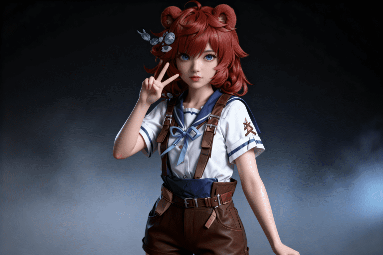 一位年轻亚洲女性,全身像,动漫转贞本义行风格,拥有精致立体的五官,真人比例身材,人物形象参考图2,皮肤白皙细腻,质感通透,朦胧的光照,整体妆容精致自然,背景为深色渐变,突出人物主体,光线柔和朦胧,呈现出专业摄影的质感,画面清晰,细节丰富,具有3D渲染的精致效果。