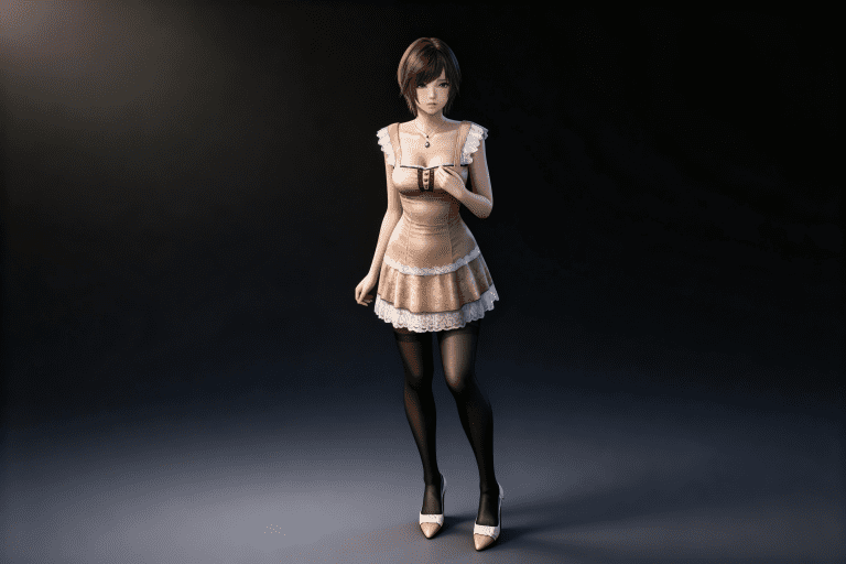 一位年轻亚洲女性,全身像,动漫转贞本义行风格,拥有精致立体的五官,真人比例身材,人物形象参考图2,皮肤白皙细腻,质感通透,朦胧的光照,整体妆容精致自然,背景为深色渐变,突出人物主体,光线柔和朦胧,呈现出专业摄影的质感,画面清晰,细节丰富,具有3D渲染的精致效果。