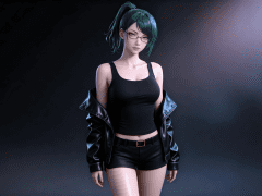 一位年轻亚洲女性,全身像,动漫转贞本义行风格,拥有精致立体的五官,真人比例身材,人物形象参考图2,皮肤白皙细腻,质感通透,朦胧的光照,整体妆容精致自然,背景为深色渐变,突出人物主体,光线柔和朦胧,呈现出专业摄影的质感,画面清晰,细节丰富,具有3D渲染的精致效果。