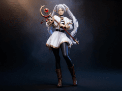 一位年轻亚洲女性,全身像,动漫转贞本义行风格,拥有精致立体的五官,真人比例身材,人物形象参考图2,皮肤白皙细腻,质感通透,朦胧的光照,整体妆容精致自然,背景为深色渐变,突出人物主体,光线柔和朦胧,呈现出专业摄影的质感,画面清晰,细节丰富,具有3D渲染的精致效果。有一种空灵的氛围感。