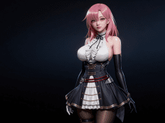 一位年轻亚洲女性,全身像,动漫转贞本义行风格,拥有精致立体的五官,真人比例身材,人物形象参考图2,皮肤白皙细腻,质感通透,整体妆容精致自然,背景为深色渐变,突出人物主体,光线柔和,呈现出专业摄影的质感,画面清晰,细节丰富,具有3D渲染的精致效果。清晰的画面风格,高超清。