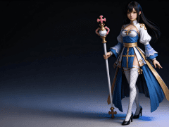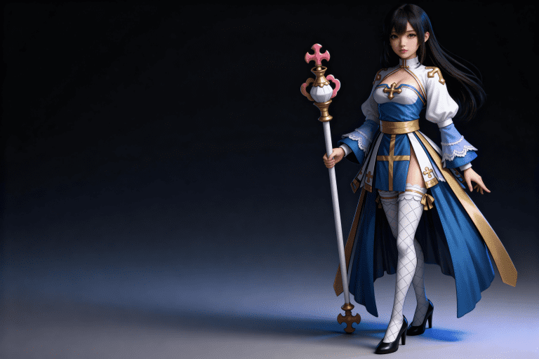 一位年轻亚洲女性,全身像,动漫转贞本义行风格,拥有精致立体的五官,真人比例身材,人物形象参考图2,皮肤白皙细腻,质感通透,整体妆容精致自然,背景为深色渐变,突出人物主体,光线柔和,呈现出专业摄影的质感,画面清晰,细节丰富,具有3D渲染的精致效果。清晰的画面风格,高超清。