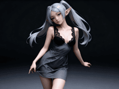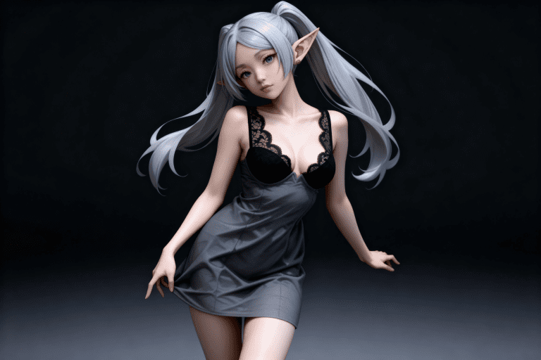 一位年轻亚洲女性,全身像,动漫转贞本义行风格,拥有精致立体的五官,真人比例身材,人物形象参考图2,皮肤白皙细腻,质感通透,整体妆容精致自然,背景为深色渐变,突出人物主体,光线柔和,呈现出专业摄影的质感,画面清晰,细节丰富,具有3D渲染的精致效果。清晰的画面风格,高超清。