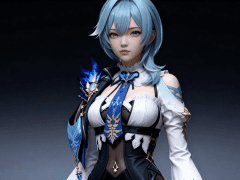 一位年轻亚洲女性,全身像,动漫转贞本义行风格,拥有精致立体的五官,真人比例身材,人物形象参考图2,皮肤白皙细腻,质感通透,整体妆容精致自然,背景为深色渐变,突出人物主体,光线柔和,呈现出专业摄影的质感,画面清晰,细节丰富,具有3D渲染的精致效果。清晰的画面风格,高超清。