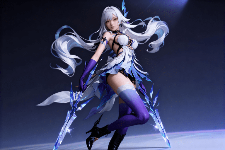 一位年轻亚洲女性,全身像,动漫转贞本义行风格,拥有精致立体的五官,真人比例身材,人物形象参考图2,皮肤白皙细腻,质感通透,整体妆容精致自然,背景为深色渐变,突出人物主体,光线柔和,呈现出专业摄影的质感,画面清晰,细节丰富,具有3D渲染的精致效果。清晰的画面风格,高超清。