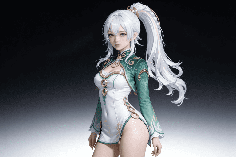 一位年轻亚洲女性,全身像,动漫转贞本义行风格,拥有精致立体的五官,真人比例身材,人物形象参考图2,皮肤白皙细腻,质感通透,整体妆容精致自然,背景为深色渐变,突出人物主体,光线柔和,呈现出专业摄影的质感,画面清晰,细节丰富,具有3D渲染的精致效果。清晰的画面风格,高超清。