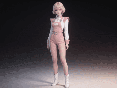 一位年轻亚洲女性,全身像,动漫转贞本义行风格,拥有精致立体的五官,真人比例身材,人物形象参考图2,皮肤白皙细腻,质感通透,整体妆容精致自然,背景为深色渐变,突出人物主体,光线柔和,呈现出专业摄影的质感,画面清晰,细节丰富,具有3D渲染的精致效果。清晰的画面风格,高超清。