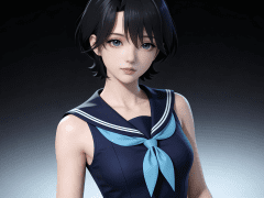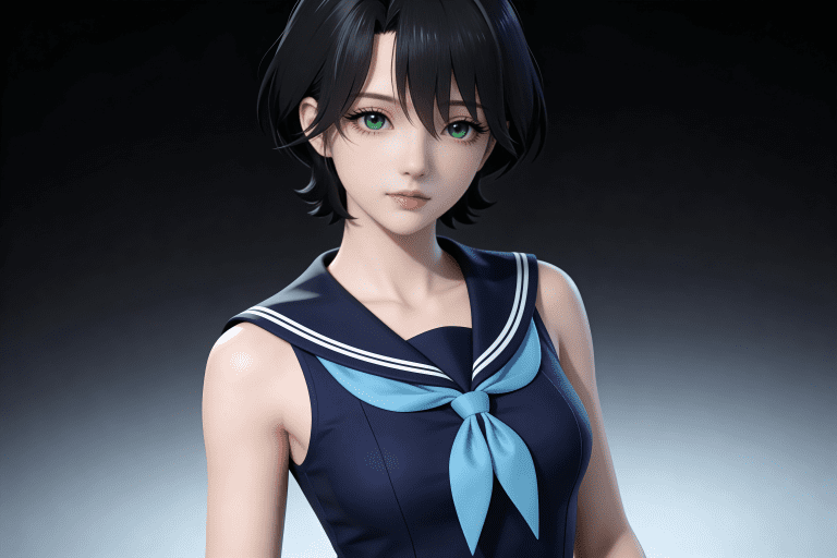 一位年轻亚洲女性,全身像,动漫转贞本义行风格,拥有精致立体的五官,真人比例身材,人物形象参考图2,皮肤白皙细腻,质感通透,整体妆容精致自然,背景为深色渐变,突出人物主体,光线柔和,呈现出专业摄影的质感,画面清晰,细节丰富,具有3D渲染的精致效果。清晰的画面风格,高超清。