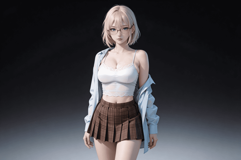 一位年轻亚洲女性,全身像,动漫转贞本义行风格,拥有精致立体的五官,真人比例身材,人物形象参考图2,皮肤白皙细腻,质感通透,整体妆容精致自然,背景为深色渐变,突出人物主体,光线柔和,呈现出专业摄影的质感,画面清晰,细节丰富,具有3D渲染的精致效果。清晰的画面风格,高超清。