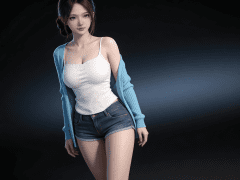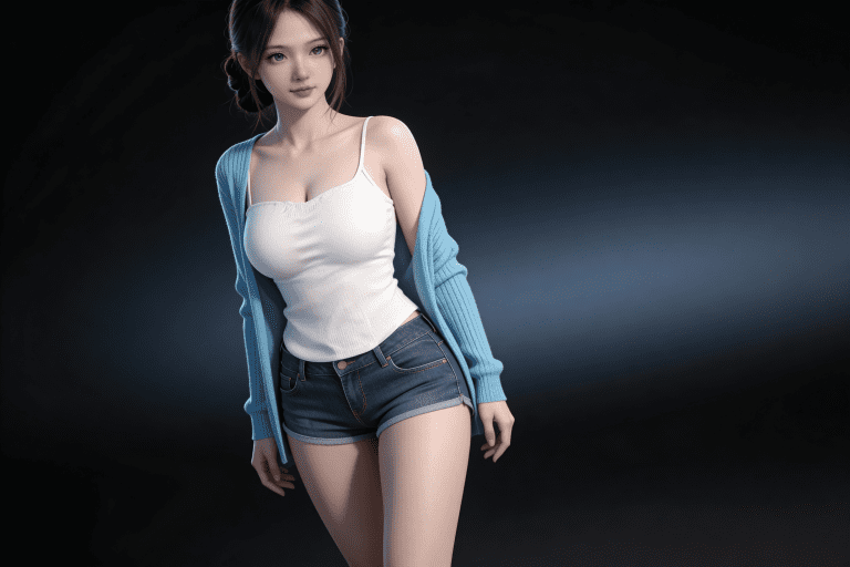 一位年轻亚洲女性,全身像,动漫转贞本义行风格,拥有精致立体的五官,真人比例身材,人物形象参考图2,皮肤白皙细腻,质感通透,整体妆容精致自然,背景为深色渐变,突出人物主体,光线柔和,呈现出专业摄影的质感,画面清晰,细节丰富,具有3D渲染的精致效果。清晰的画面风格,高超清。