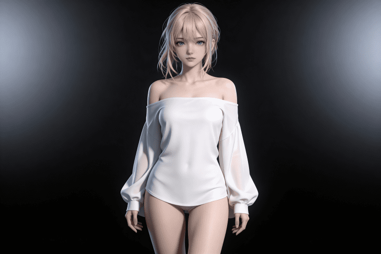 一位年轻亚洲女性,全身像,动漫转贞本义行风格,拥有精致立体的五官,真人比例身材,人物形象参考图2,皮肤白皙细腻,质感通透,整体妆容精致自然,背景为深色渐变,突出人物主体,光线柔和,呈现出专业摄影的质感,画面清晰,细节丰富,具有3D渲染的精致效果。清晰的画面风格,高超清。