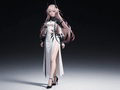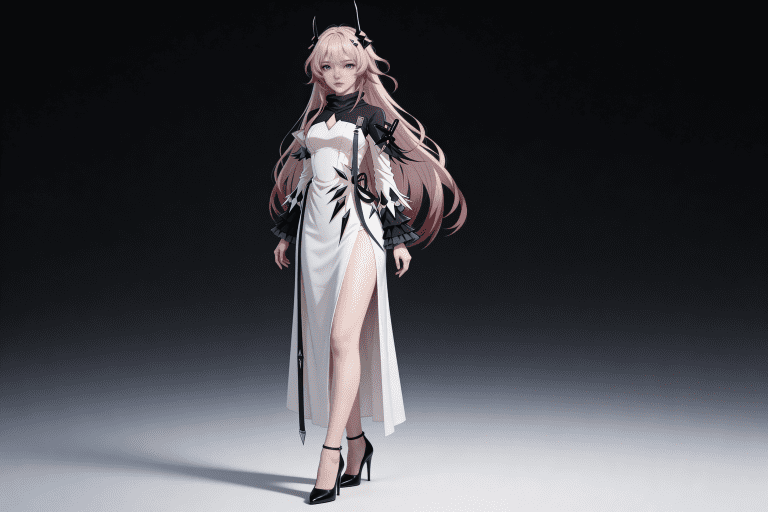 一位年轻亚洲女性,全身像,动漫转贞本义行风格,拥有精致立体的五官,真人比例身材,人物形象参考图2,皮肤白皙细腻,质感通透,整体妆容精致自然,背景为深色渐变,突出人物主体,光线柔和,呈现出专业摄影的质感,画面清晰,细节丰富,具有3D渲染的精致效果。清晰的画面风格,高超清。