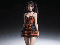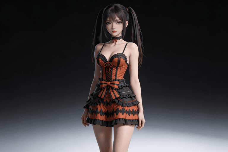 一位年轻亚洲女性,全身像,动漫转贞本义行风格,拥有精致立体的五官,真人比例身材,人物形象参考图2,皮肤白皙细腻,质感通透,整体妆容精致自然,背景为深色渐变,突出人物主体,光线柔和,呈现出专业摄影的质感,画面清晰,细节丰富,具有3D渲染的精致效果。清晰的画面风格,高超清。