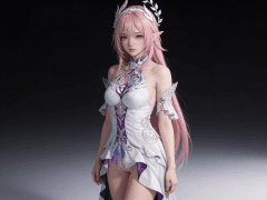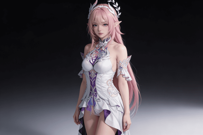 一位年轻亚洲女性,全身像,动漫转贞本义行风格,拥有精致立体的五官,真人比例身材,人物形象参考图2,皮肤白皙细腻,质感通透,整体妆容精致自然,背景为深色渐变,突出人物主体,光线柔和,呈现出专业摄影的质感,画面清晰,细节丰富,具有3D渲染的精致效果。清晰的画面风格,高超清。