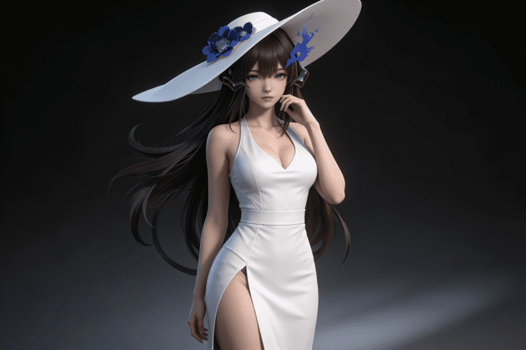 一位年轻亚洲女性,全身像,动漫转贞本义行风格,拥有精致立体的五官,真人比例身材,人物形象参考图2,皮肤白皙细腻,质感通透,整体妆容精致自然,背景为深色渐变,突出人物主体,光线柔和,呈现出专业摄影的质感,画面清晰,细节丰富,具有3D渲染的精致效果。清晰的画面风格,高超清。