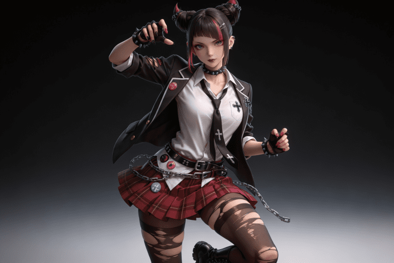 一位年轻亚洲女性,全身像,动漫转贞本义行风格,拥有精致立体的五官,真人比例身材,人物形象参考图2,皮肤白皙细腻,质感通透,整体妆容精致自然,背景为深色渐变,突出人物主体,光线柔和,呈现出专业摄影的质感,画面清晰,细节丰富,具有3D渲染的精致效果。清晰的画面风格,高超清。