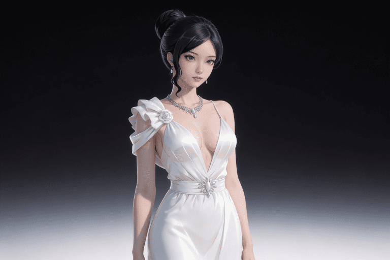 一位年轻亚洲女性,全身像,动漫转贞本义行风格,拥有精致立体的五官,真人比例身材,人物形象参考图2,皮肤白皙细腻,质感通透,整体妆容精致自然,背景为深色渐变,突出人物主体,光线柔和,呈现出专业摄影的质感,画面清晰,细节丰富,具有3D渲染的精致效果。清晰的画面风格,高超清。