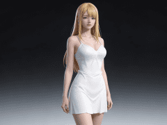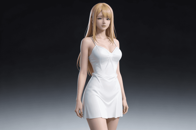一位年轻亚洲女性,全身像,动漫转贞本义行风格,拥有精致立体的五官,真人比例身材,人物形象参考图2,皮肤白皙细腻,质感通透,整体妆容精致自然,背景为深色渐变,突出人物主体,光线柔和,呈现出专业摄影的质感,画面清晰,细节丰富,具有3D渲染的精致效果。清晰的画面风格,高超清。