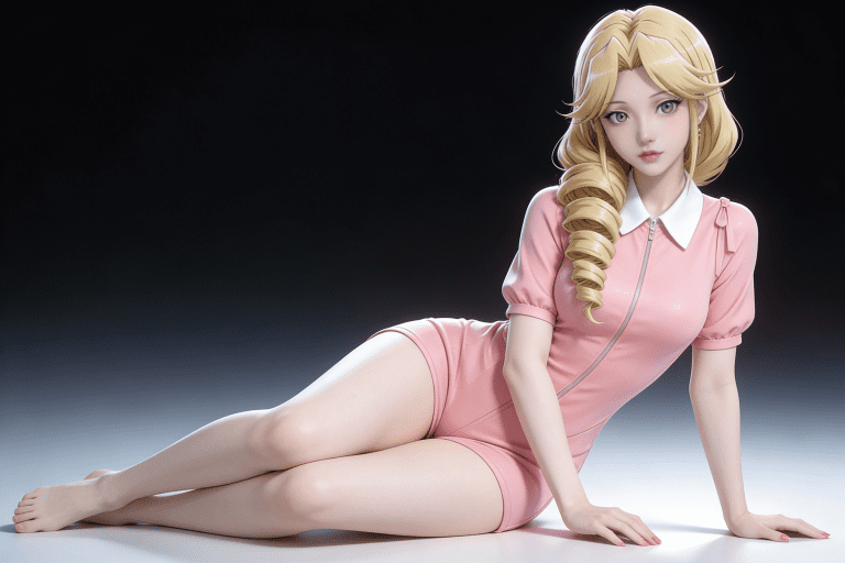 一位年轻亚洲女性,全身像,动漫转贞本义行风格,拥有精致立体的五官,真人比例身材,人物形象参考图2,皮肤白皙细腻,质感通透,整体妆容精致自然,背景为深色渐变,突出人物主体,光线柔和,呈现出专业摄影的质感,画面清晰,细节丰富,具有3D渲染的精致效果。清晰的画面风格,高超清。