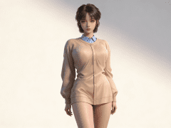 一位年轻亚洲女性,全身像,动漫转贞本义行风格,拥有精致立体的五官,真人比例身材,人物形象参考图2,皮肤白皙细腻,质感通透,整体妆容精致自然,背景为浅色,突出人物主体,温暖高亮的光影,呈现出专业摄影的质感,画面清晰,细节丰富,具有3D渲染的精致效果。清晰的画面风格,高超清。3d皮肤材质。UE5建模。3d动画材质