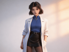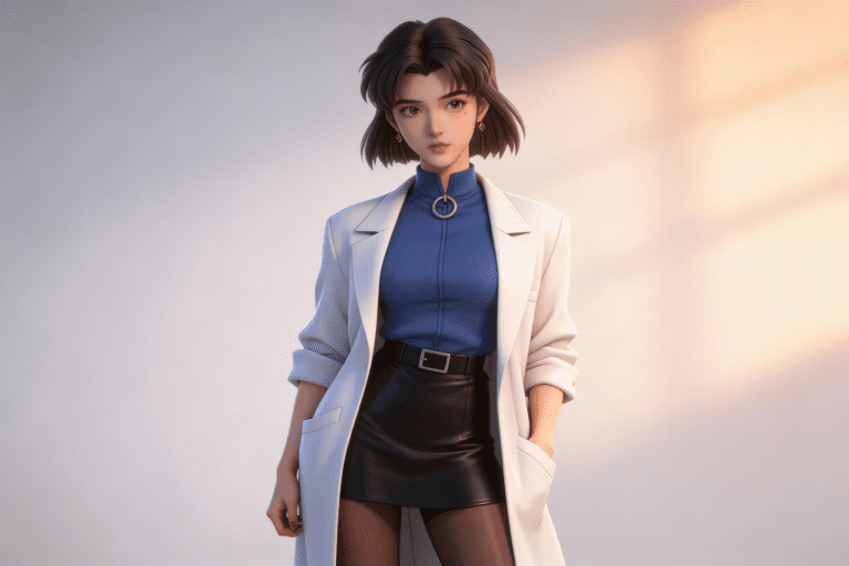 一位年轻亚洲女性,全身像,动漫转贞本义行风格,拥有精致立体的五官,真人比例身材,人物形象参考图2,皮肤白皙细腻,质感通透,整体妆容精致自然,背景为浅色,突出人物主体,温暖柔和的光影,唯美的光影,呈现出专业摄影的质感,画面清晰,细节丰富,具有3D渲染的精致效果。清晰的画面风格,高超清。3d皮肤材质。UE5建模。3d动画材质