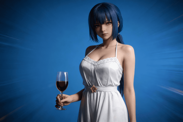 写实风格,写真风格,真人皮肤,3d建模脸,超高分辨率,全身女,冷酷漠视,动态模糊,广角景深,高亮度,ue5渲染,强对比,电影级特效,高挑修长,日系风格,正面光照,纯色蓝色背景。