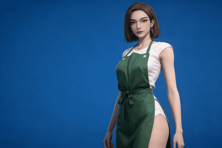 人物形象参考图2,写实风格,写真风格,真人皮肤,真人3d建模脸,超高分辨率,全身女,冷酷漠视,广角景深,高亮度,ue5渲染,强对比,电影级特效,高挑修长,日系风格,纯色蓝色背景。
