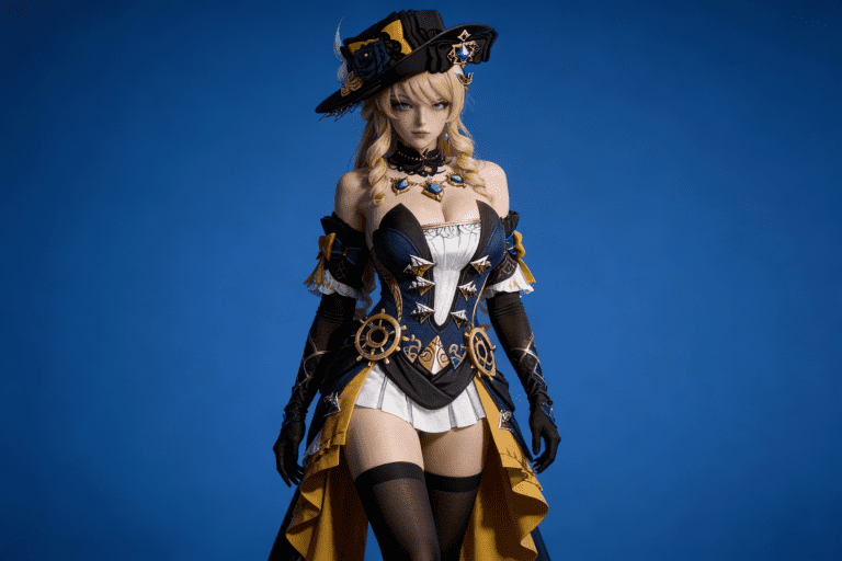 人物形象参考图2,写实风格,写真风格,真人皮肤,真人3d建模脸,超高分辨率,全身女,冷酷漠视,广角景深,高亮度,ue5渲染,强对比,电影级特效,高挑修长,日系风格,纯色蓝色背景。