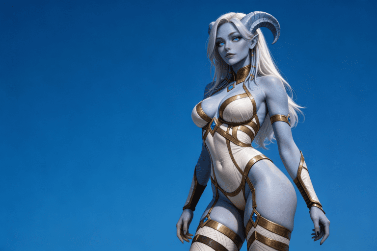 人物形象参考图2,写实风格,写真风格,真人皮肤,真人3d建模脸,超高分辨率,全身女,冷酷漠视,广角景深,高亮度,ue5渲染,强对比,电影级特效,高挑修长,日系风格,纯色蓝色背景。