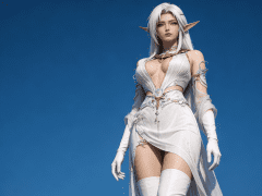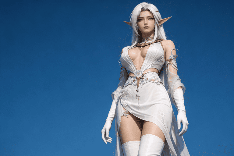 人物形象参考图2,写实风格,写真风格,真人皮肤,真人3d建模脸,超高分辨率,全身女,冷酷漠视,广角景深,高亮度,ue5渲染,强对比,电影级特效,高挑修长,日系风格,纯色蓝色背景。