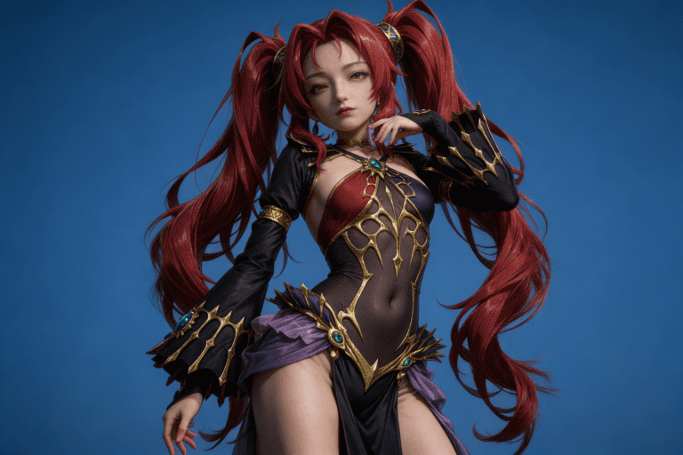 人物形象参考图2,写实风格,写真风格,真人皮肤,真人3d建模脸,超高分辨率,全身女,冷酷漠视,广角景深,高亮度,ue5渲染,强对比,电影级特效,高挑修长,日系风格,纯色蓝色背景。