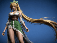 人物形象参考图2,写实风格,写真风格,真人皮肤,真人3d建模脸,超高分辨率,全身女,冷酷漠视,广角景深,高亮度,ue5渲染,强对比,电影级特效,高挑修长,日系风格,纯色蓝色背景。