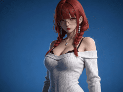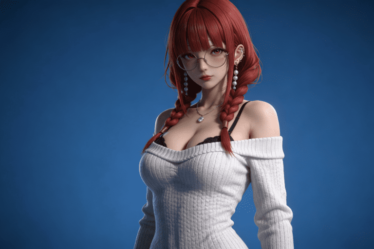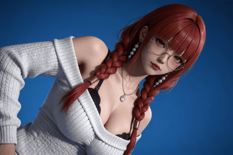 人物形象参考图2,写实风格,写真风格,真人皮肤,真人3d建模脸,超高分辨率,全身女,冷酷漠视,广角景深,高亮度,ue5渲染,强对比,电影级特效,高挑修长,日系风格,纯色蓝色背景。3d动画渲染,壁纸。