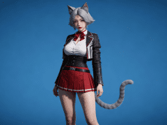 人物形象参考图2,写实风格,写真风格,真人皮肤,真人3d建模脸,超高分辨率,全身女,冷酷漠视,广角景深,高亮度,ue5渲染,强对比,电影级特效,高挑修长,日系风格,纯色蓝色背景。3d动画渲染,壁纸。