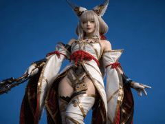 人物形象参考图2,写实风格,写真风格,真人皮肤,真人3d建模脸,超高分辨率,全身女,冷酷漠视,广角景深,高亮度,ue5渲染,强对比,电影级特效,高挑修长,日系风格,纯色蓝色背景。3d动画渲染,壁纸。