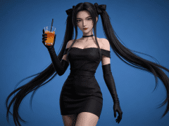 人物形象参考图2,写实风格,写真风格,真人皮肤,美白滤镜,真人3d建模脸,超高分辨率,全身女,冷酷漠视,广角景深,高亮度,ue5建模,强对比,电影级特效,高挑修长,日系风格,纯色蓝色背景。3d动画渲染,壁纸。