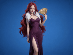 人物形象参考图2,写实风格,写真风格,建模3d皮肤,美白滤镜,真人3d建模脸,超高分辨率,全身女,冷酷漠视,广角景深,高亮度,立体光,ue5建模,强对比,电影级特效,高挑修长,日系风格,纯色蓝色背景。3d动画渲染,壁纸。