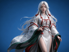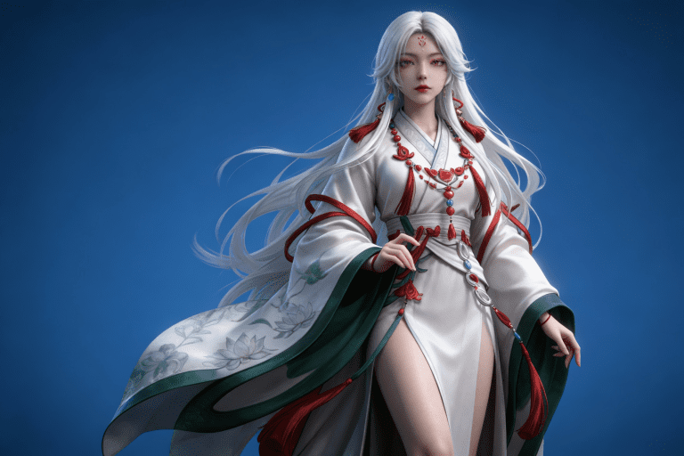 人物形象参考图2,写实风格,写真风格,建模3d皮肤,美白滤镜,真人3d建模脸,超高分辨率,全身女,冷酷漠视,广角景深,高亮度,立体光,ue5建模,强对比,电影级特效,高挑修长,日系风格,纯色蓝色背景。3d动画渲染,壁纸。