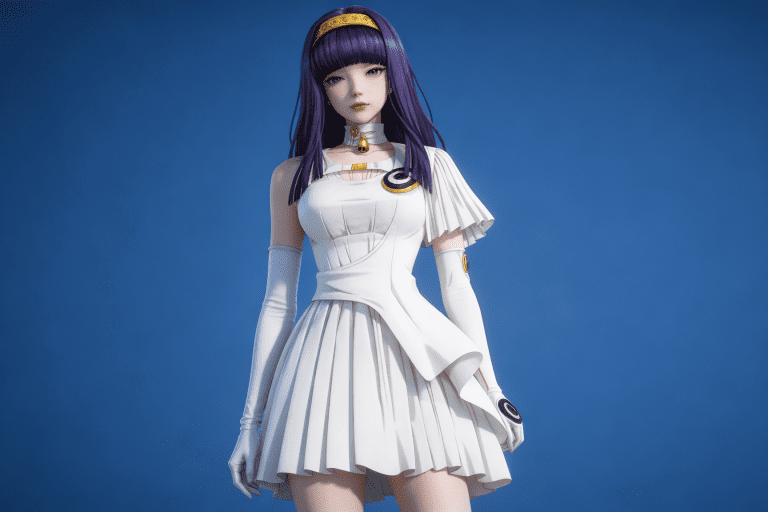 人物形象参考图2,写实风格,写真风格,建模3d皮肤,白嫩皮肤,美白滤镜,真人3d建模脸,超高分辨率,全身女,冷酷漠视,广角景深,高亮度,立体光,ue5建模,强对比,电影级特效,高挑修长,日系风格,纯色蓝色背景。3d动画渲染,壁纸。