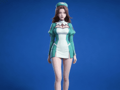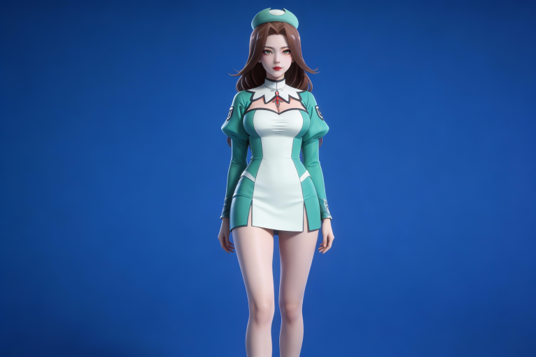 人物形象参考图2,写实风格,写真风格,建模3d皮肤,白嫩皮肤,美白滤镜,真人3d建模脸,超高分辨率,全身女,冷酷漠视,广角景深,高亮度,立体光,ue5建模,强对比,电影级特效,高挑修长,日系风格,纯色蓝色背景。3d动画渲染,壁纸。