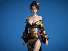 人物形象参考图2,写实风格,写真风格,建模3d皮肤,白嫩皮肤,美白滤镜,真人3d建模脸,超高分辨率,全身女,冷酷漠视,广角景深,高亮度,立体光,ue5建模,强对比,电影级特效,高挑修长,日系风格,纯色蓝色背景。3d动画渲染,壁纸。