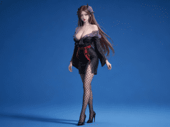 人物形象参考图2,写实风格,写真风格,建模3d皮肤,白嫩皮肤,美白滤镜,真人3d建模脸,超高分辨率,全身女,冷酷漠视,广角景深,高亮度,立体光,ue5建模,强对比,电影级特效,高挑修长,日系风格,纯色蓝色背景。3d动画渲染,壁纸。散射光,景深。