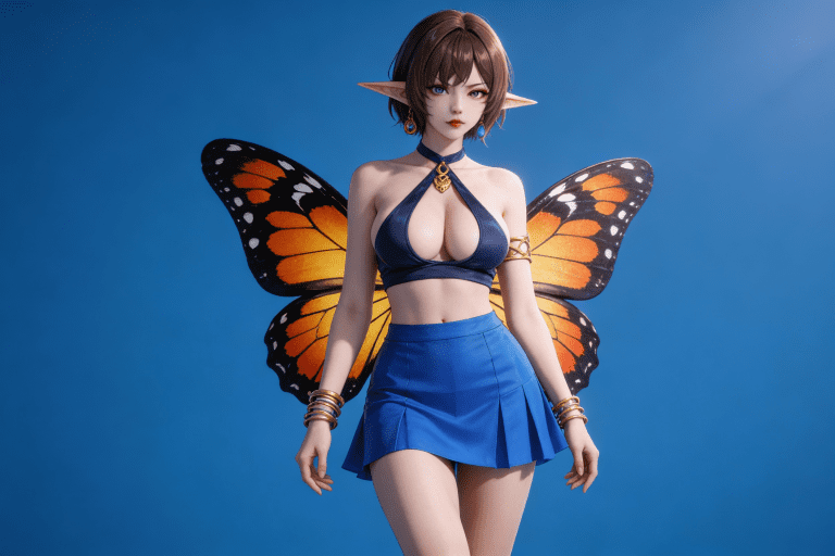 人物形象参考图2,写实风格,写真风格,建模3d皮肤,白嫩皮肤,美白滤镜,真人3d建模脸,超高分辨率,全身女,冷酷漠视,广角景深,高亮度,立体光,ue5建模,强对比,电影级特效,高挑修长,日系风格,纯色蓝色背景。3d动画渲染,壁纸。散射光,景深。