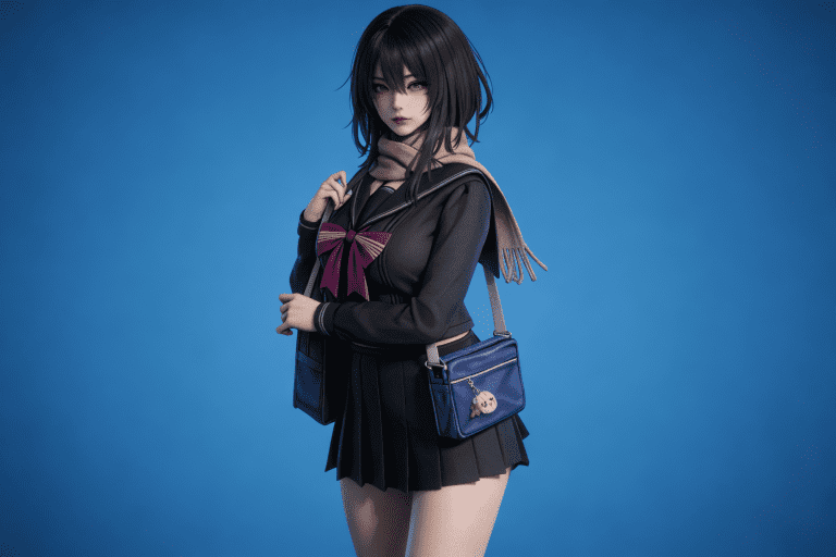 人物形象参考图2,写实风格,写真风格,建模3d皮肤,白嫩皮肤,美白滤镜,真人3d建模脸,超高分辨率,全身女,冷酷漠视,广角景深,高亮度,立体光,ue5建模,强对比,电影级特效,高挑修长,日系风格,纯色蓝色背景。3d动画渲染,壁纸。散射光,景深。
